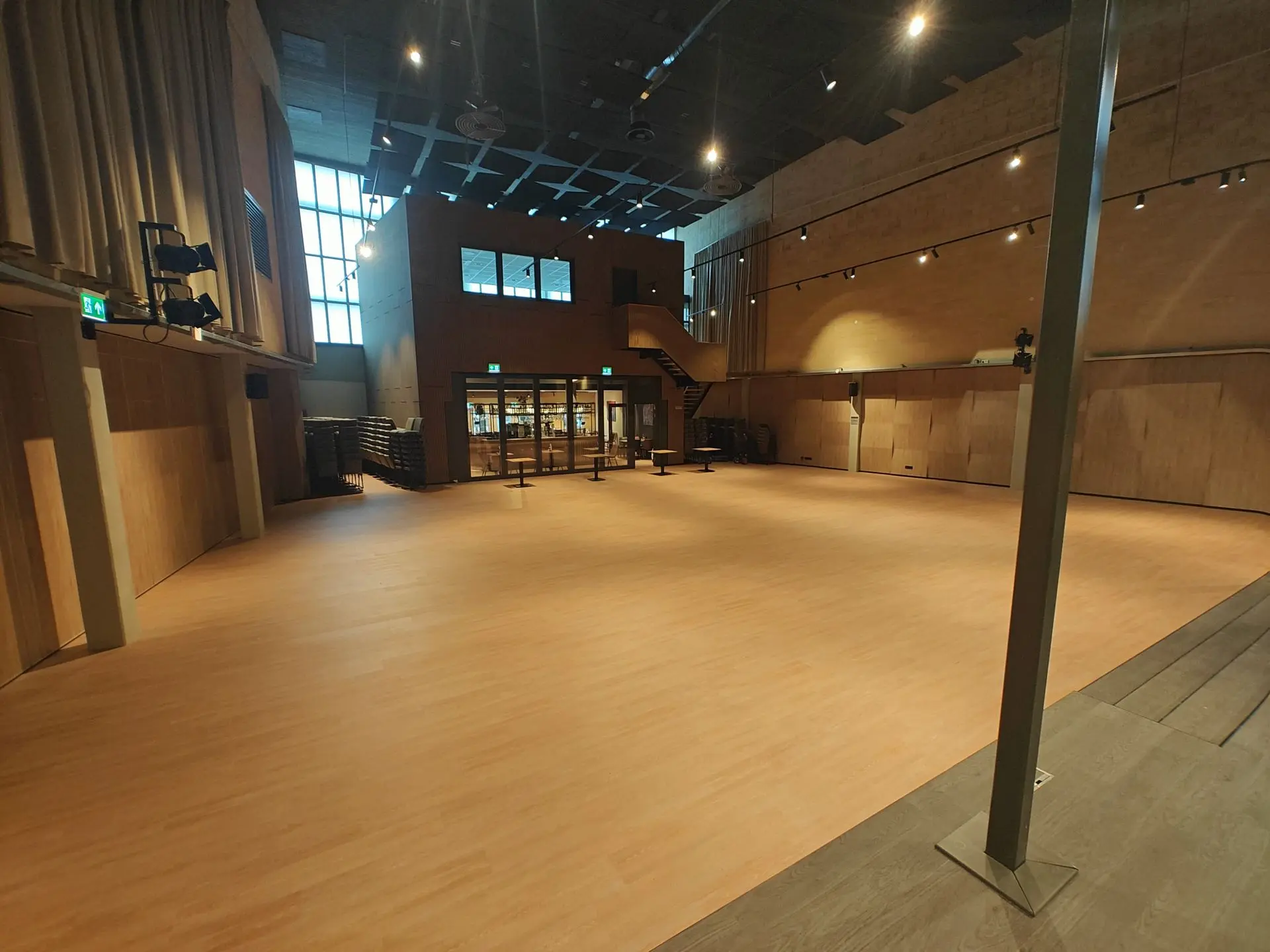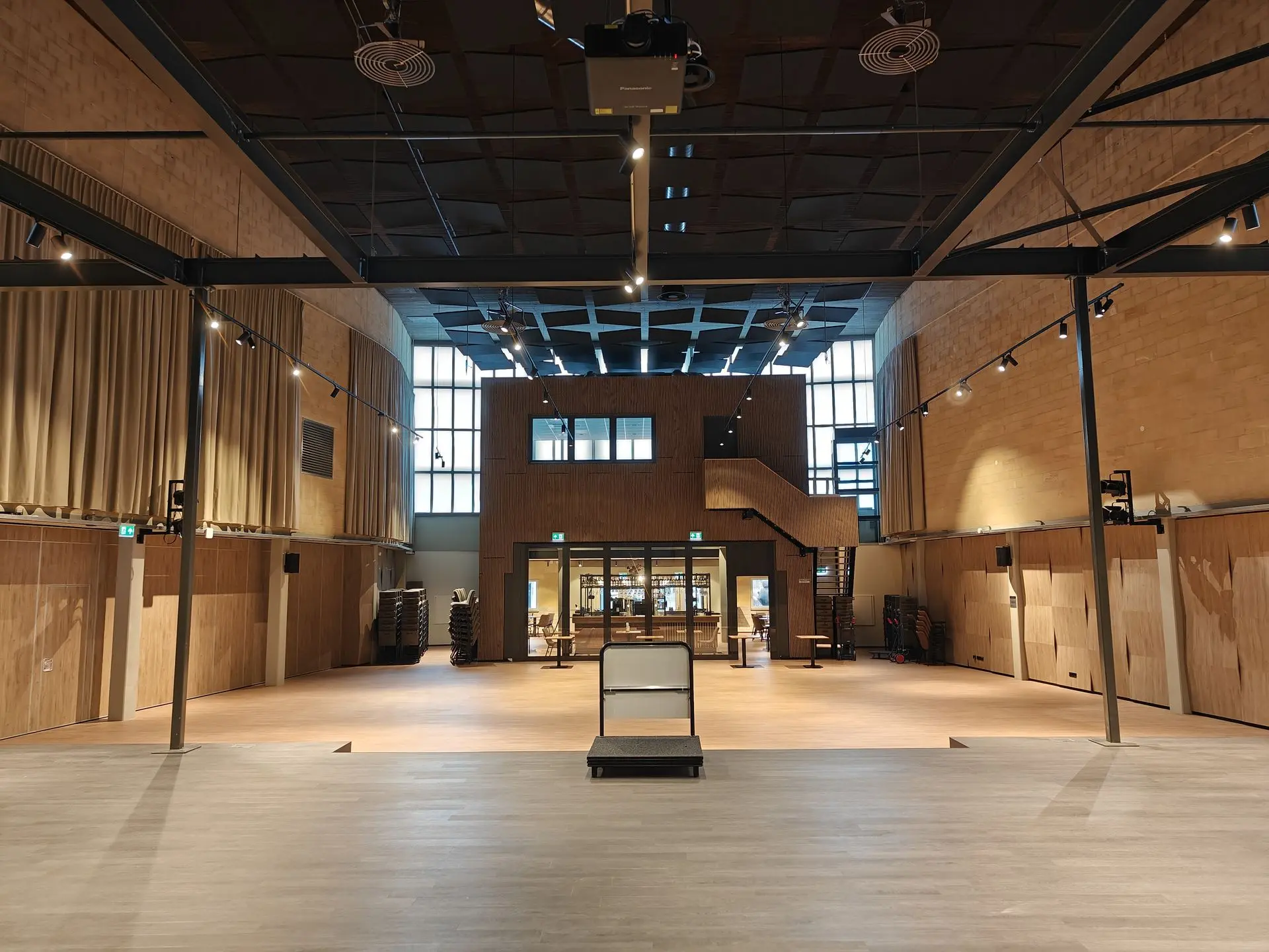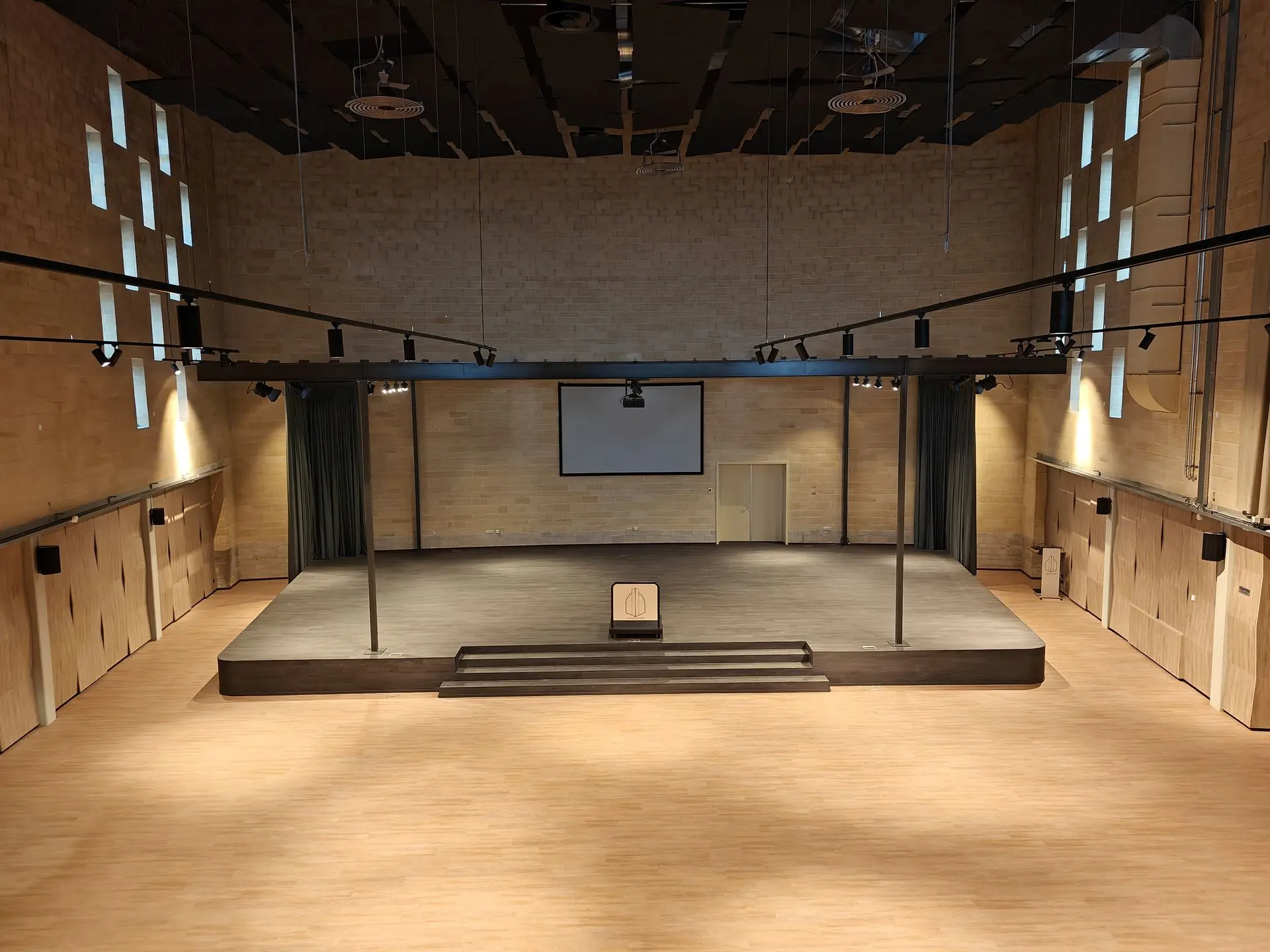 Onze grote concertzaal beschikt over 350 comfortabele zitplaatsen en een podium van 150 m² perfect voor concerten, voorstellingen, conferenties of vieringen.